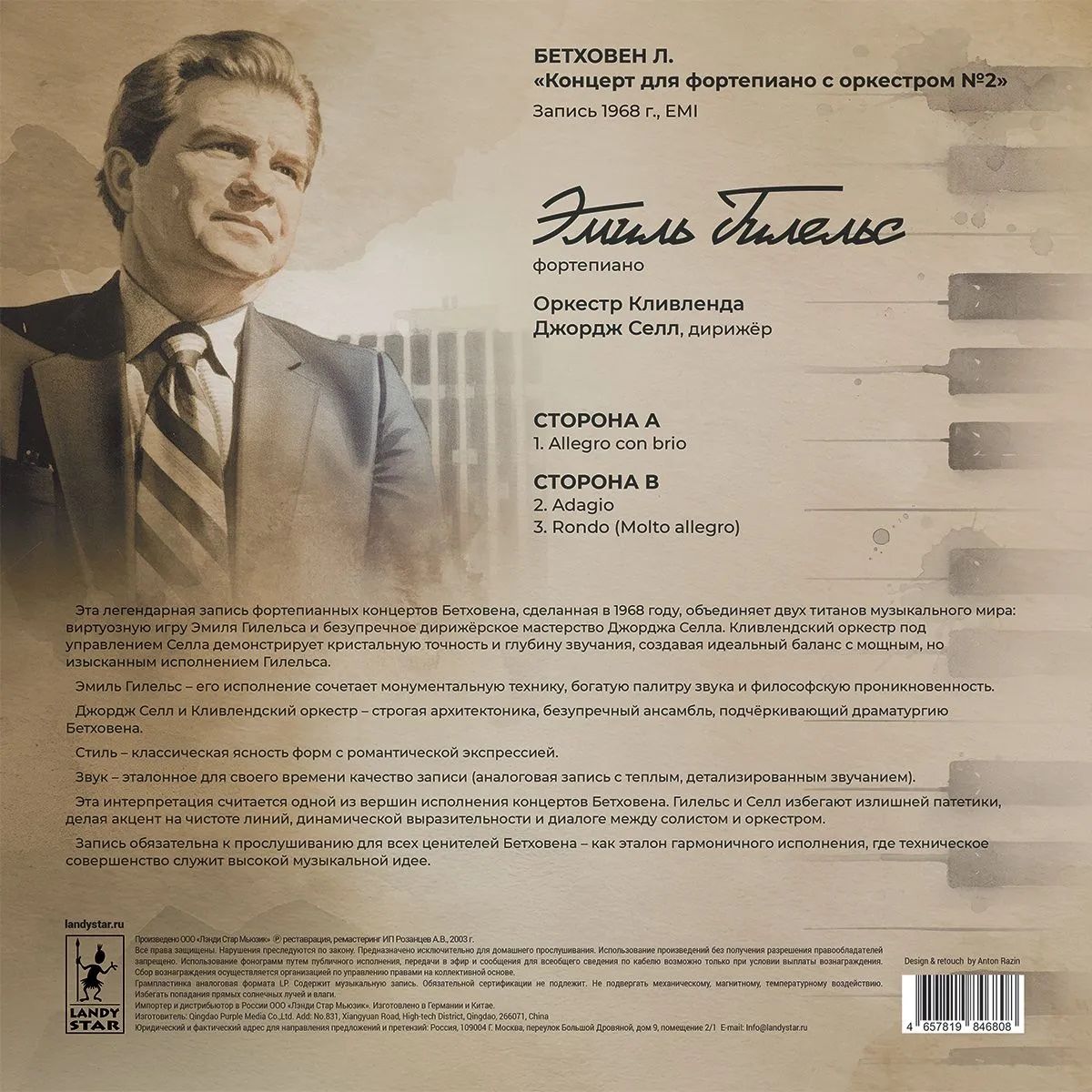 Новая запечатанная виниловая пластинка Людвиг Ван Бетховен "Концерт для фортепиано с оркестром №2" в исполнении Эмиля Гилельса и Оркестра Кливленда под управлением Джорджа Селла.