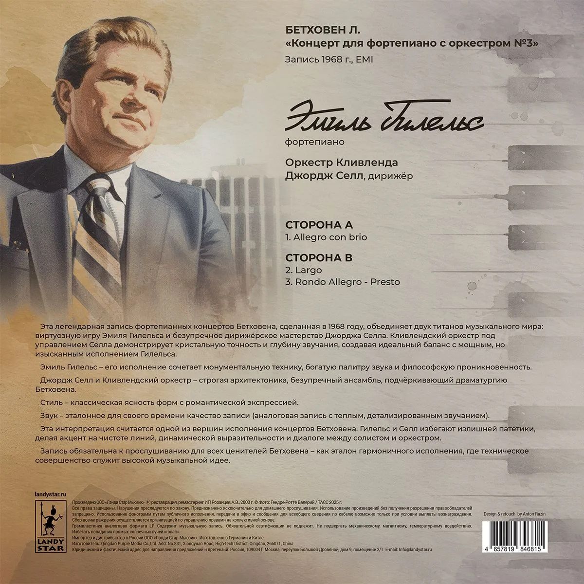 Новая запечатанная виниловая пластинка Людвиг Ван Бетховен "Концерт для фортепиано с оркестром №3" в исполнении Эмиля Гилельса и Оркестра Кливленда под управлением Джорджа Селла.